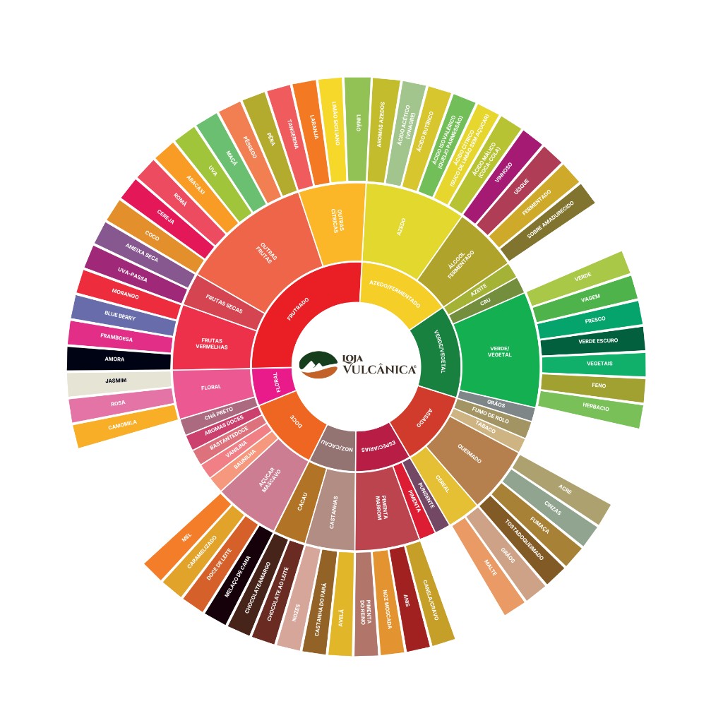 Ao usar a roda, você começa no centro com uma percepção geral e vai refinando até encontrar a descrição que mais corresponde ao que você sente. Indo um pouco além, você pode encontrar inclusive notas específicas que não estão descritas na roda de aromas, mas que fazem sentido para você.